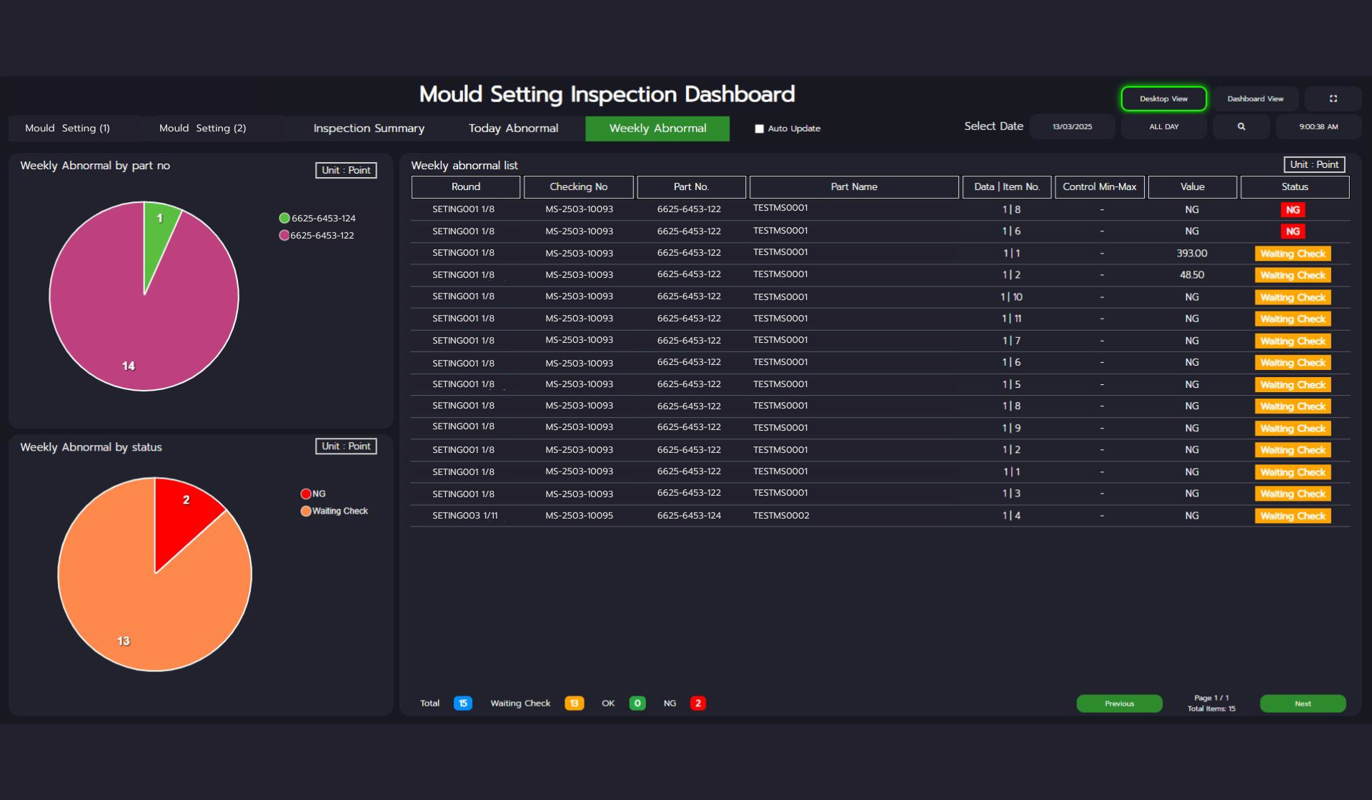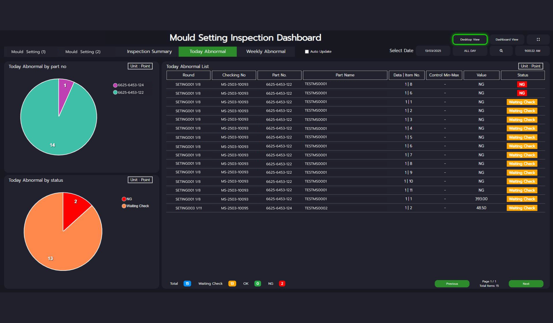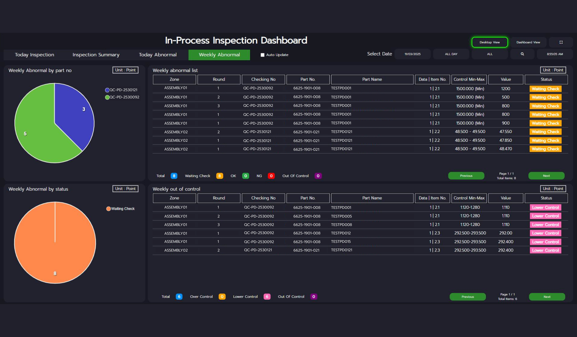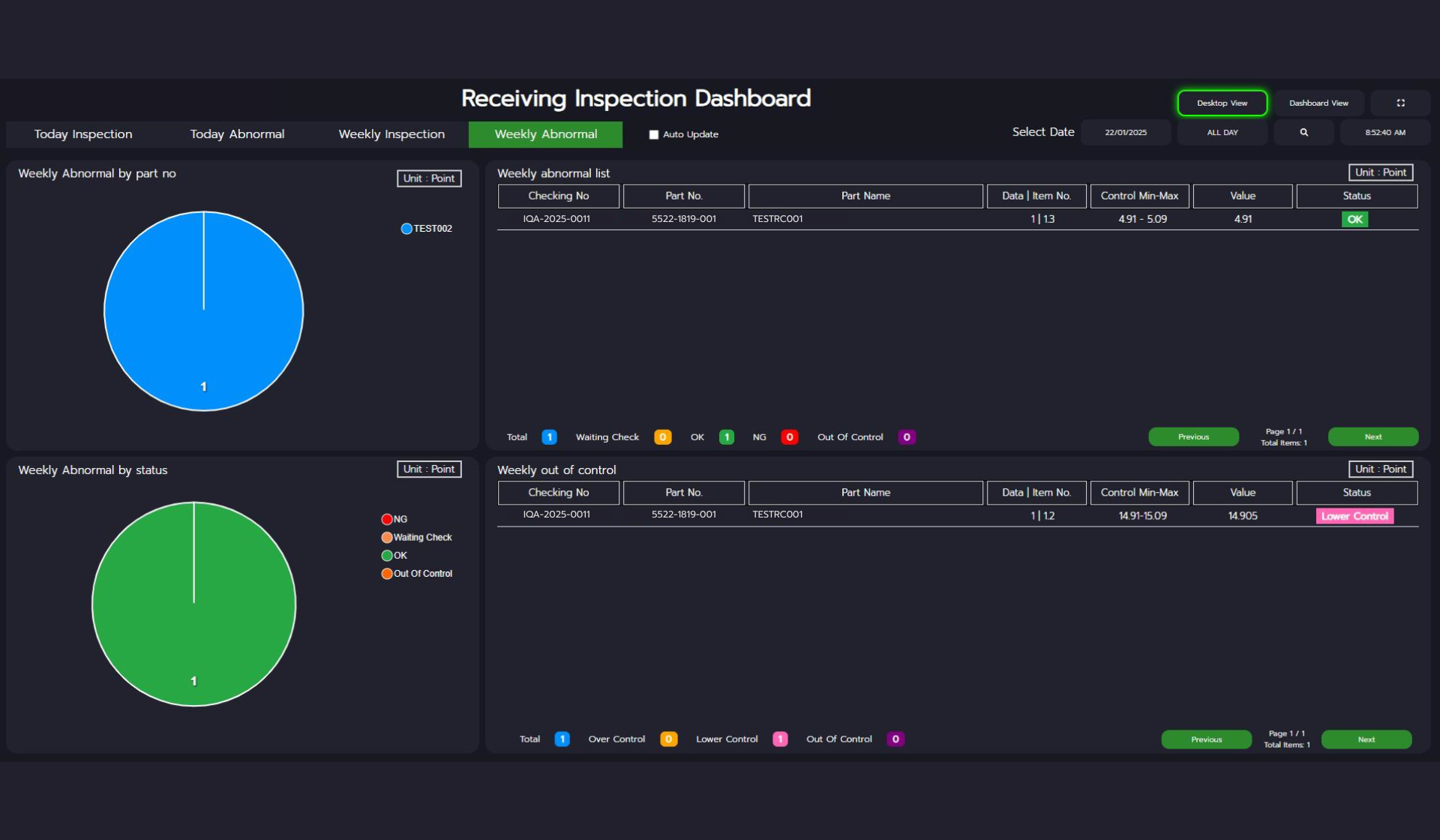 - เมื่อทำการตรวจวัดชิ้นงานแต่ละรอบเสร็จเรียบร้อยแล้ว สามารถส่งข้อมูลให้หัวหน้างานตรวจสอบแบบแยกรอบได้เลย