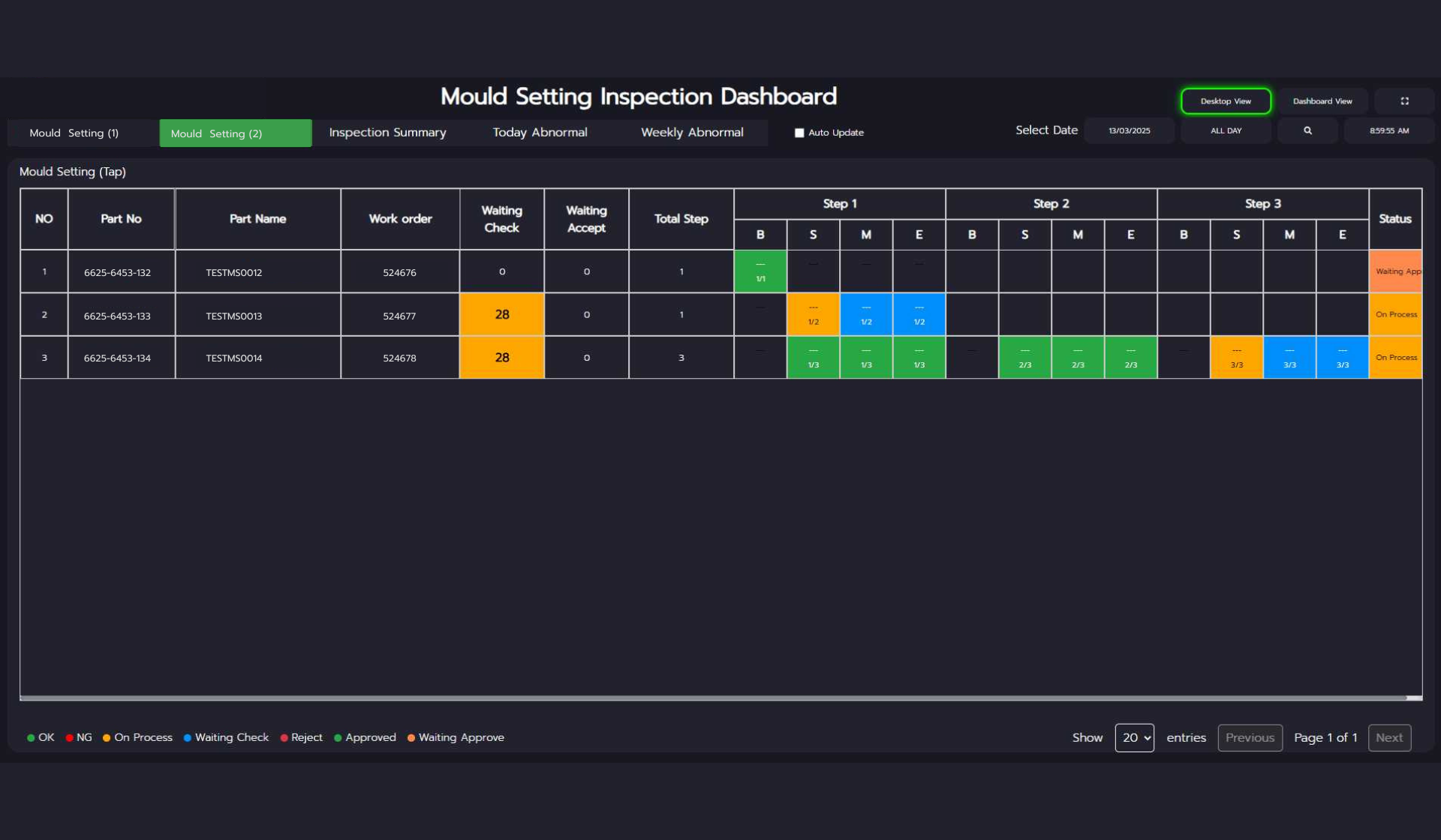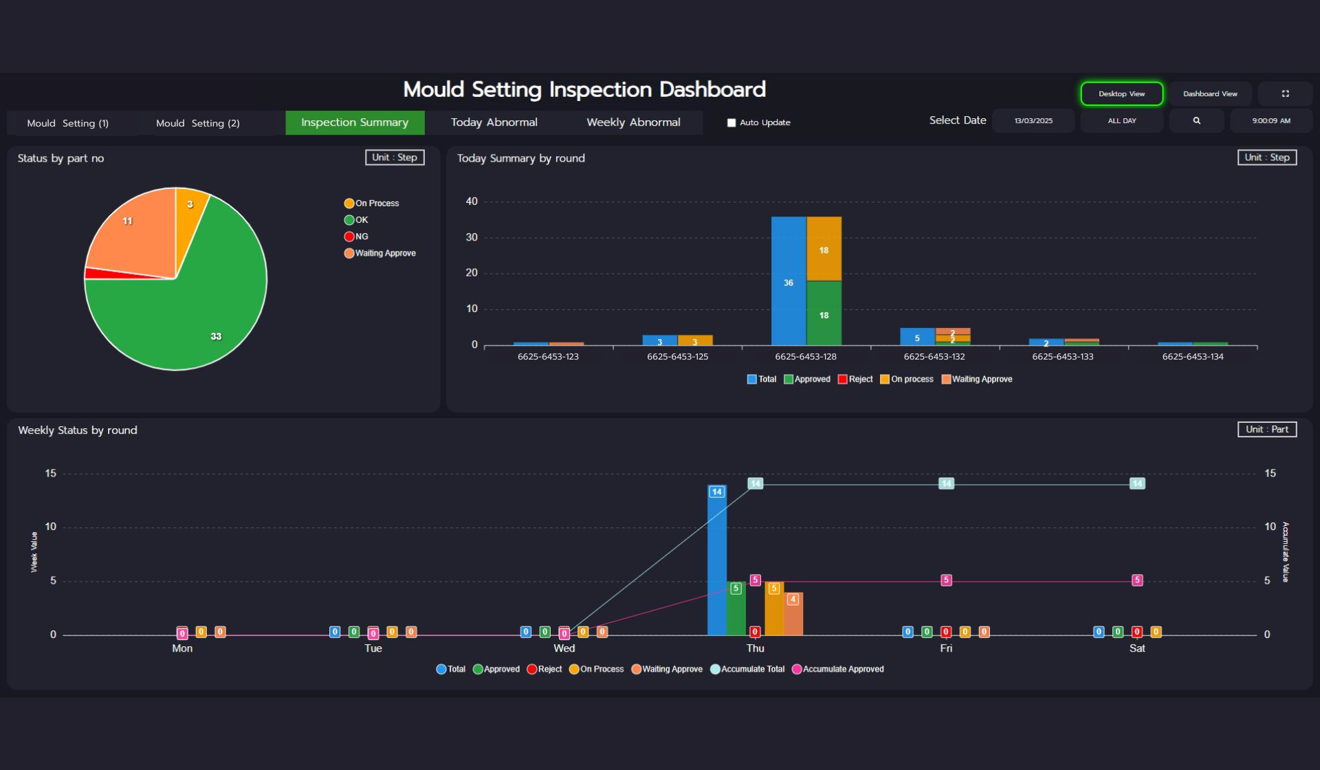 - สามารถเซ็ตสถานะไลน์ผลิตได้ เช่น เครื่องเสีย, ไฟดับ, ผลิตงานต่อเนื่อง ฯลฯ